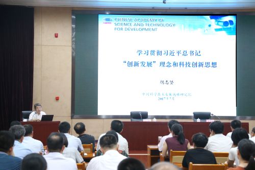 为深入贯彻许勤省长关于学深学透习近平总书记科技创新重要论述的指示精神,切实落实“三项学习制度”,7月13日上午,省科技厅在科技大厦举办“学习习近平科技创新思想”专题讲座。特邀中国科学技术发展战略研究院胡志坚院长作《学习贯彻习近平总书记“创新发展”理念和科技创新思想》专题辅导报告,省科技厅厅长马宇骏主持报告会,厅系统全体党员干部参加了会议。