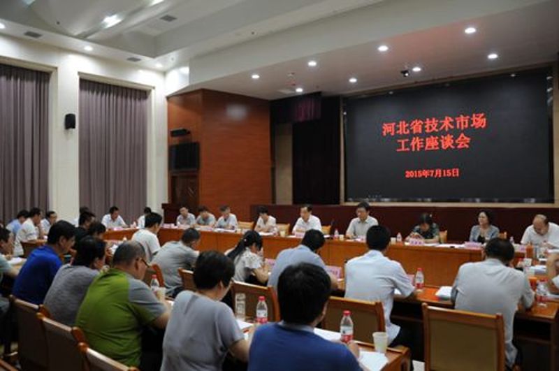 2015年7月15日,河北省技术市场工作座谈会在石家庄召开。省科技厅巡视员鲍继宏出席会议并讲话。各设区市、省直管县(市)科技局,省科技开发中心,省科技成果转化中心代表参加了会议。会议就上半年技术市场工作情况、技术转移(交易)机构建设状况和下一步工作安排进行了座谈交流。