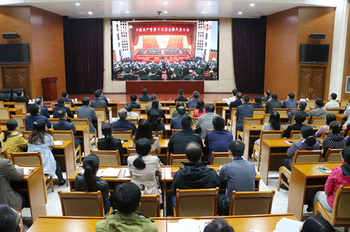 10月18日上午,省科技厅机关全体党员干部在科技大厦一楼大会议室集中收看了中国共产党第十九次全国代表大会开幕会直播盛况,认真聆听习近平总书记在中国共产党第十九次全国代表大会上的报告。