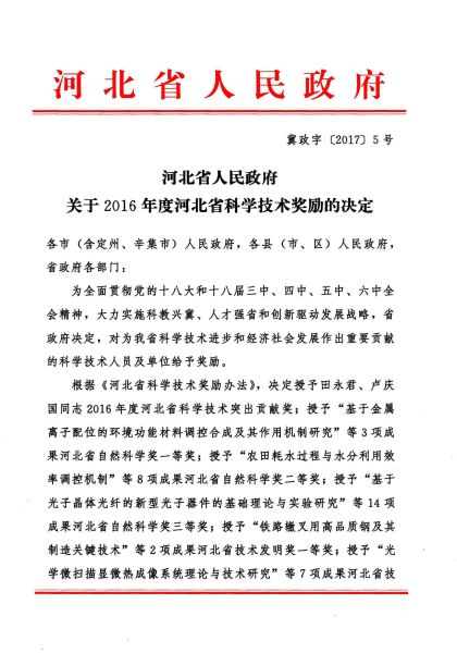 首页 > 专题专栏 > 2016年度河北省科学技术奖励大会 > 奖励决定
